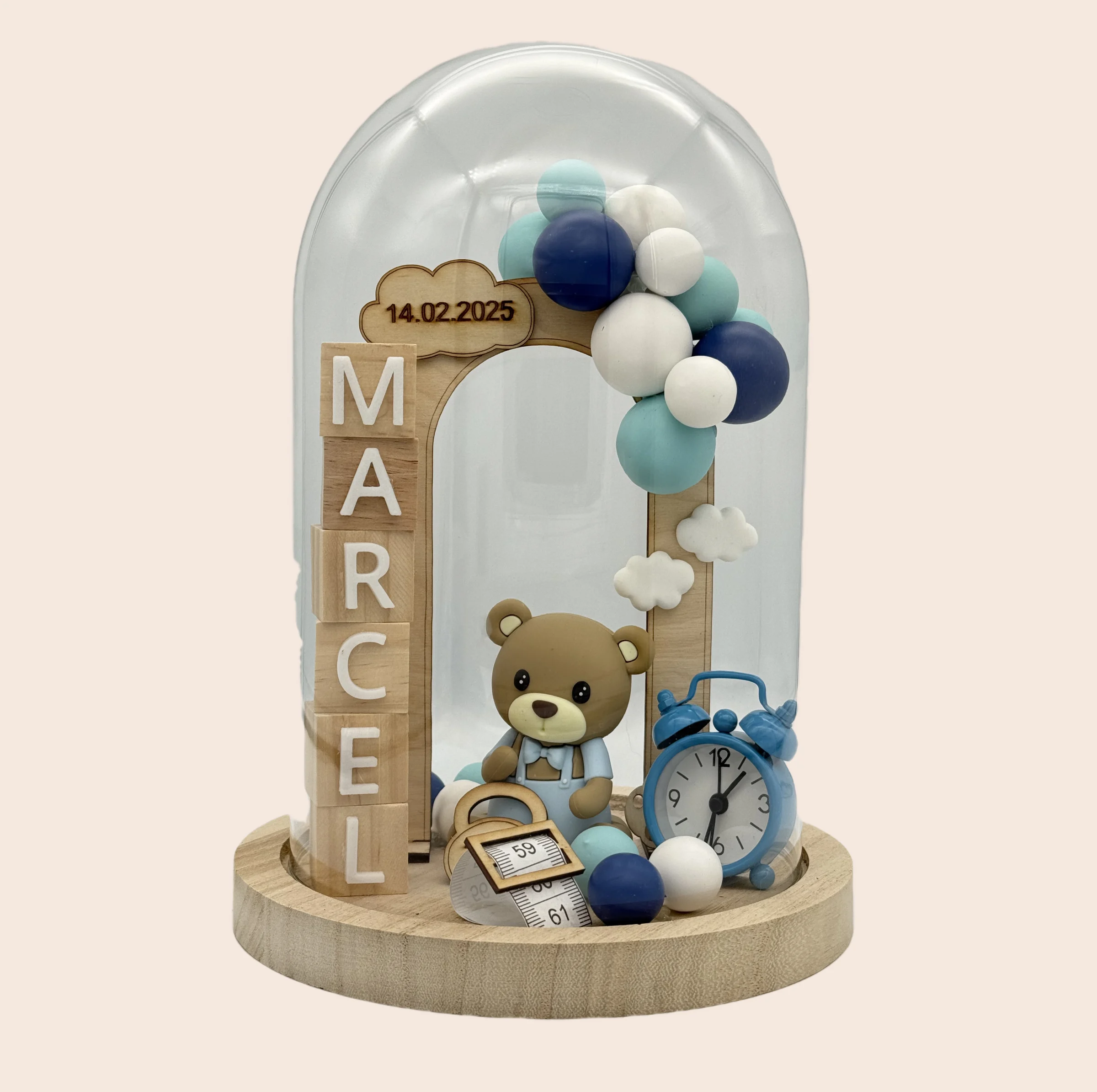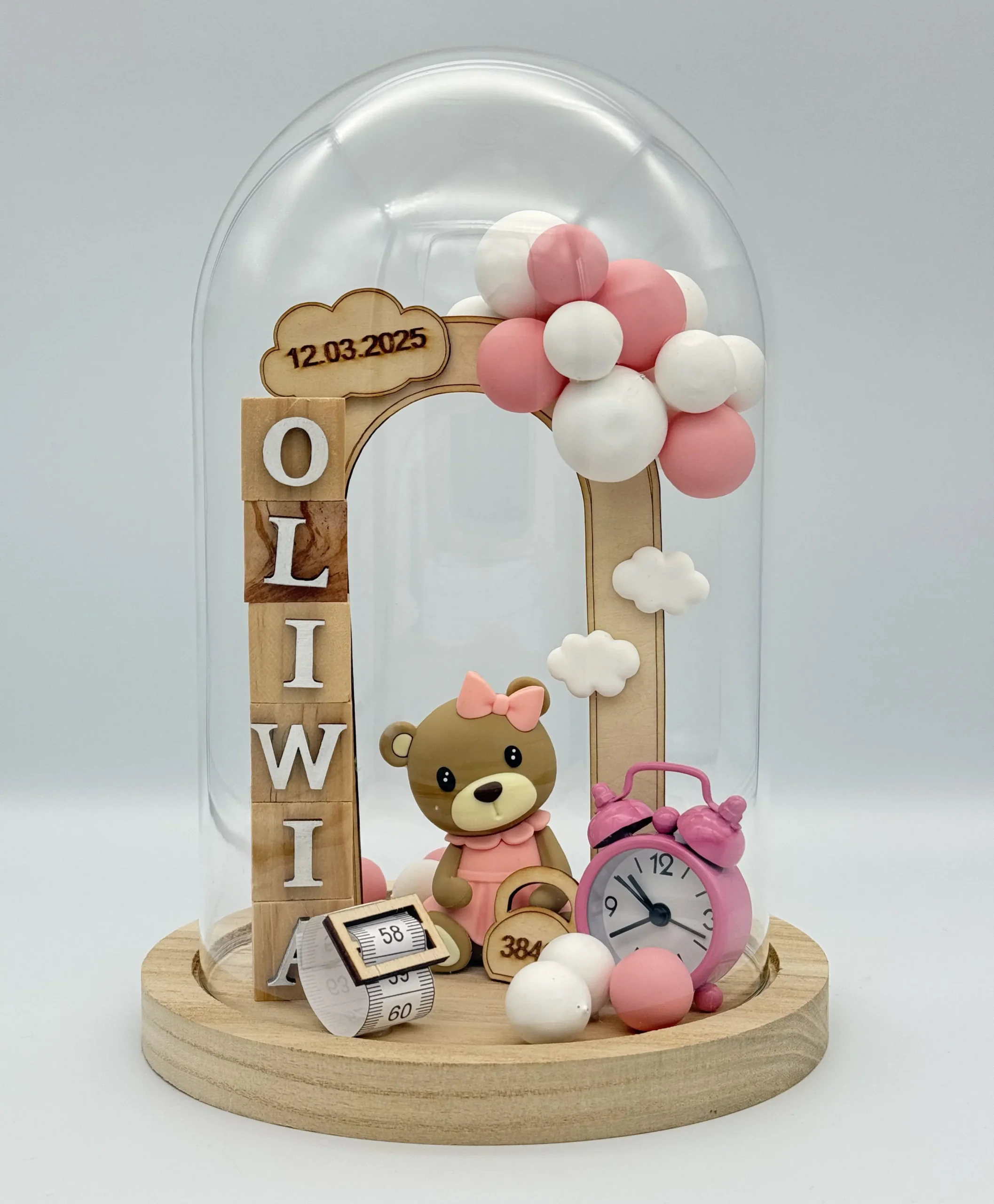 Wyjątkowe personalizowane metryczki dla dziecka w formie eleganckiej szklanej kopułki na drewnianej podstawce lub ramki. Idealny prezent od rodziców, dziadków, chrzestnych lub przyjaciół jako oryginalna dekoracja pokoju dziecięcego.