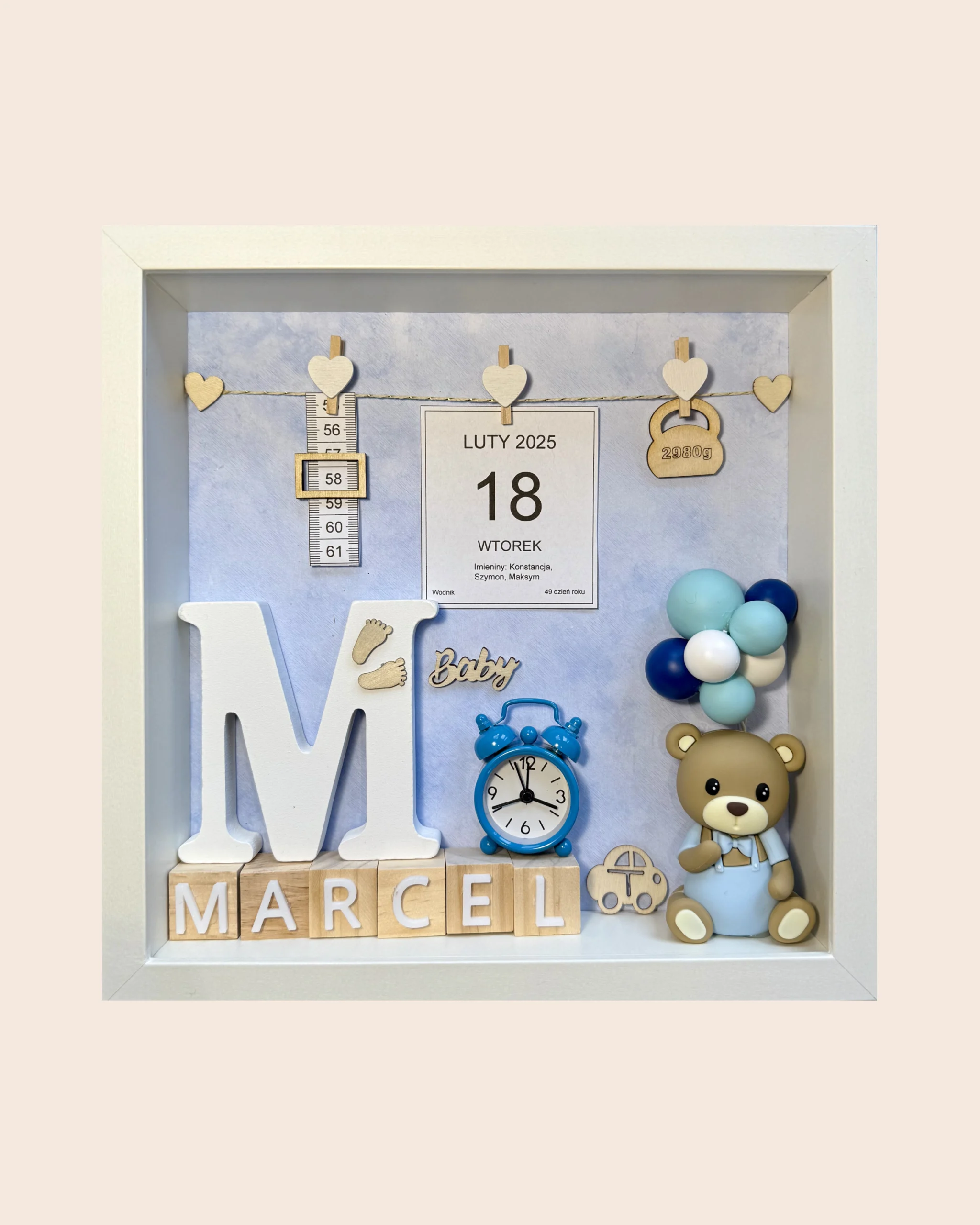 Do przygotowania personalizowanej metryczki potrzebujemy: imienia dziecka, daty i godziny urodzenia, wagi oraz długości. Możesz je podać przy składaniu zamówienia – w specjalnych polach.
